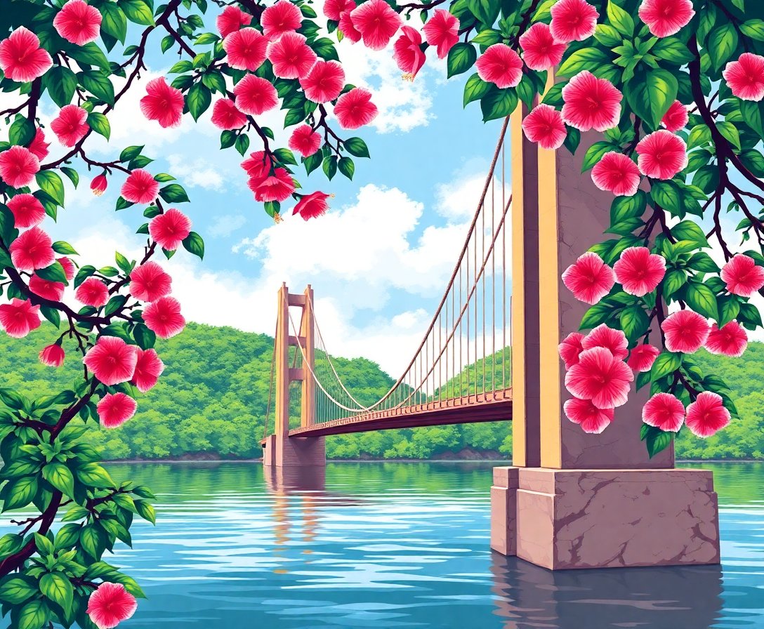 This exceptional design celebrates both architectural heritage and botanical beauty harmoniously. Start your artistic adventure today with this remarkable classic suspension bridge painting experience.