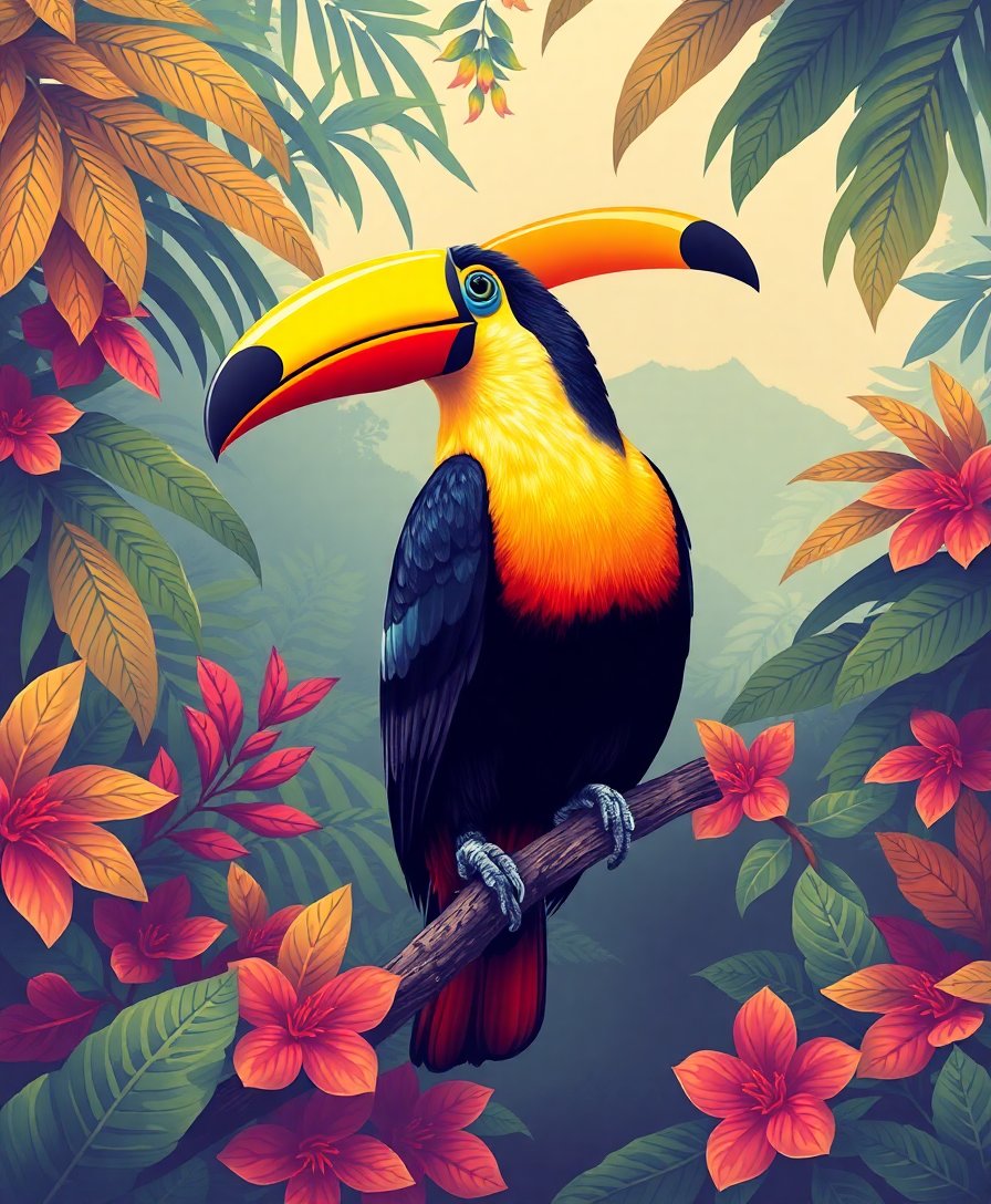 Transform your space with this captivating Vintage High Canopy Toucan Paint By Numbers design. This stunning tropical masterpiece brings the lush beauty of rainforest wildlife directly to your home. Moreover, the vintage aesthetic adds timeless elegance to any room.