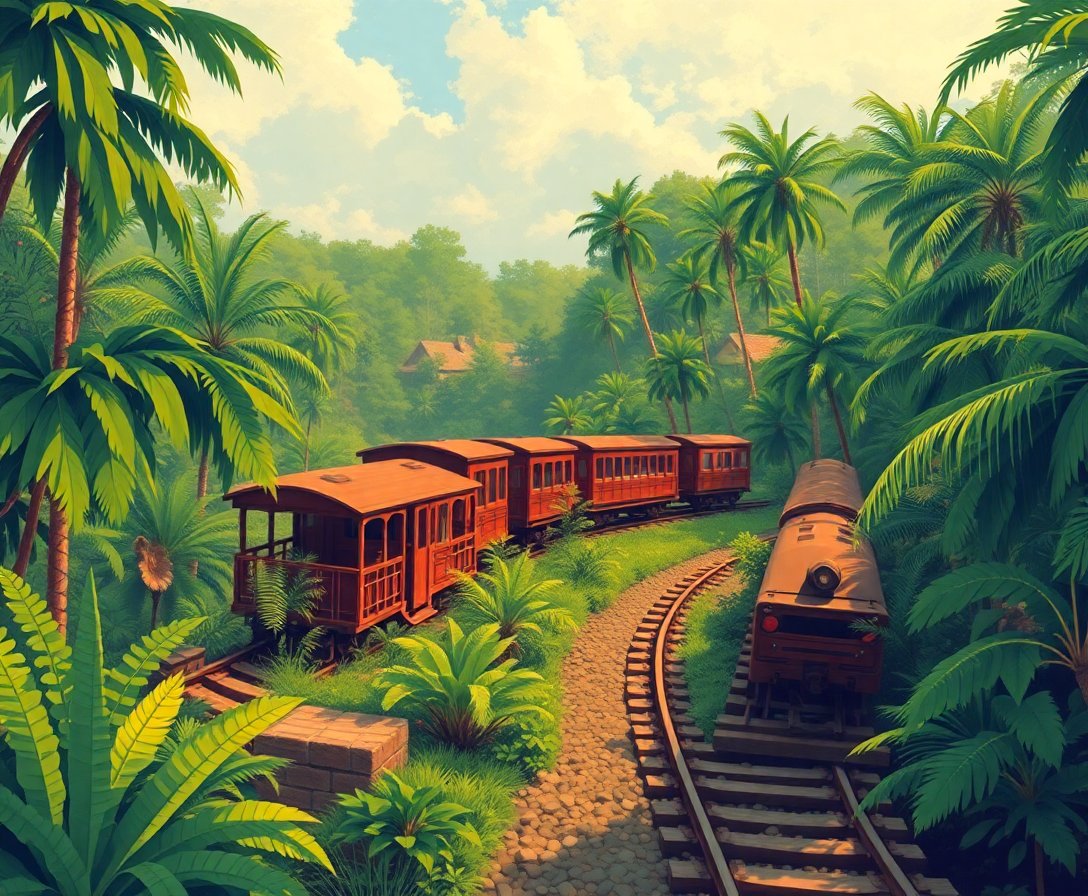Subsequently, begin with lighter sections to establish your foundation. Work methodically from background elements forward. Each brushstroke brings the vintage locomotive and tropical foliage to life.