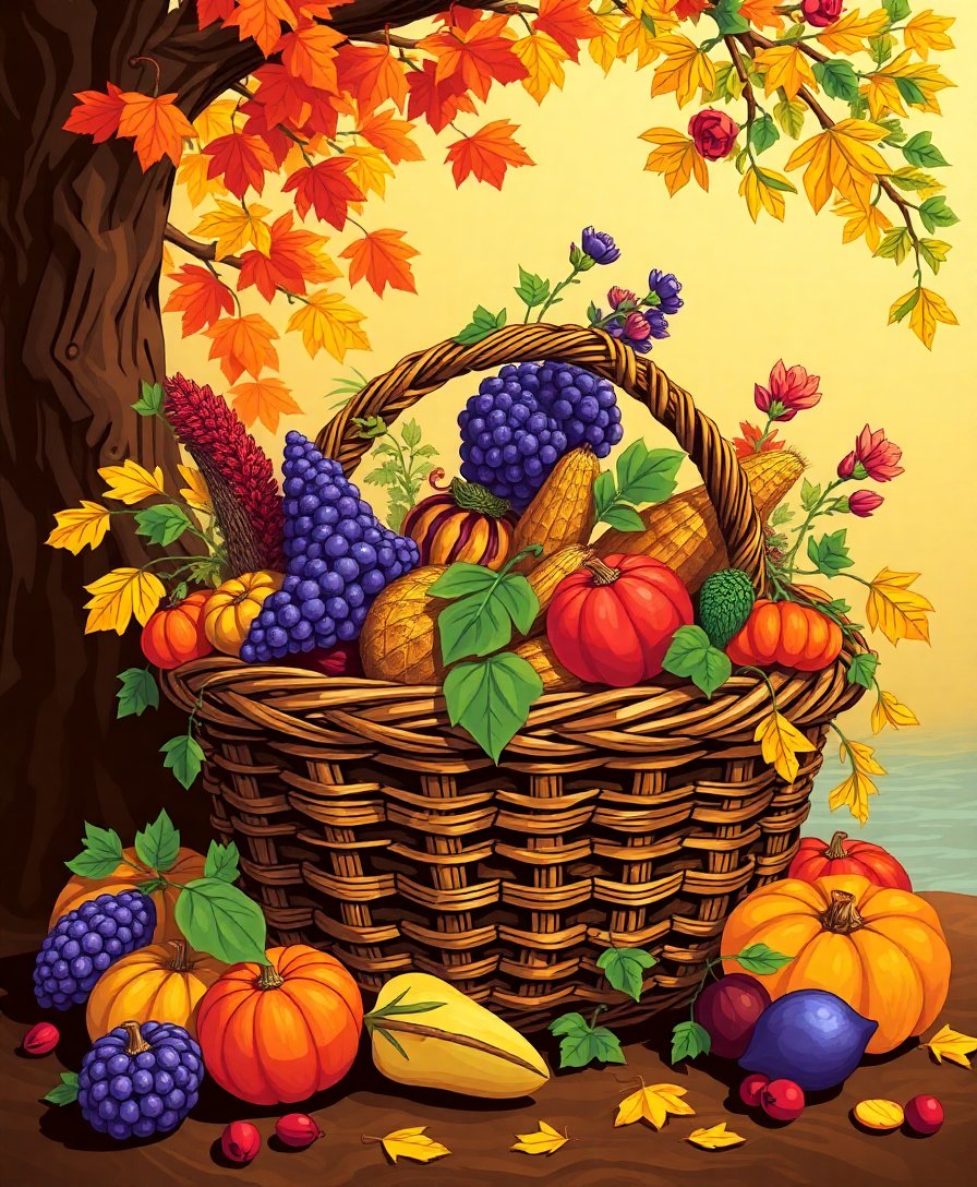 Vintage Island Harvest Basket Paint By Numbers