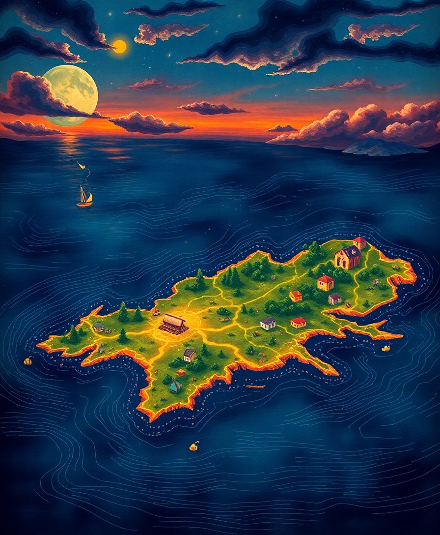 Transform your creative space with this enchanting Vintage Island Map Glow Paint By Numbers kit. This captivating design features warm sepia tones and tropical elements that create a mesmerizing candlelight effect. Each brushstroke brings you closer to completing your own vintage masterpiece.
