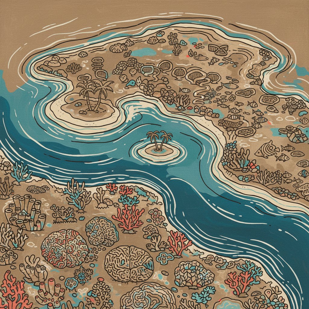 Subsequently, begin with larger reef sections before moving to intricate details. The monochrome palette creates stunning depth while maintaining the vintage drafting aesthetic. Each stroke brings the tropical reef to life.