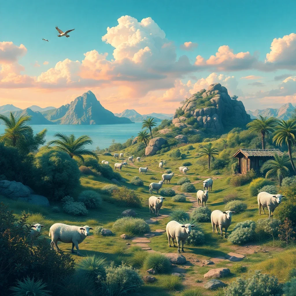 Transform your creative space with this enchanting Vintage Island Sheep Oasis paint by numbers experience. This captivating design features peaceful sheep grazing in a serene desert landscape. Every brushstroke brings you closer to creating your own pastoral masterpiece.