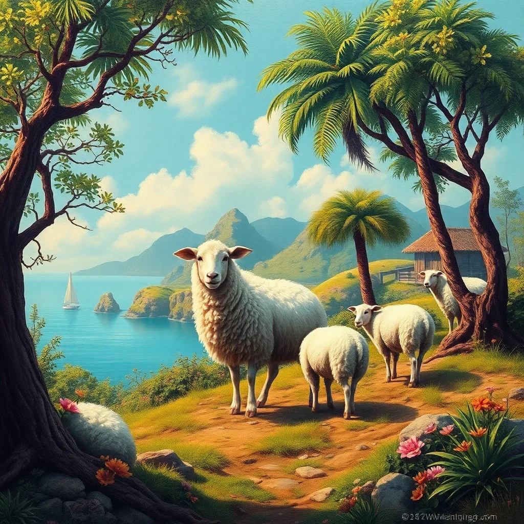Complete Vintage Island Sheep Oasis Paint By Numbers Kit