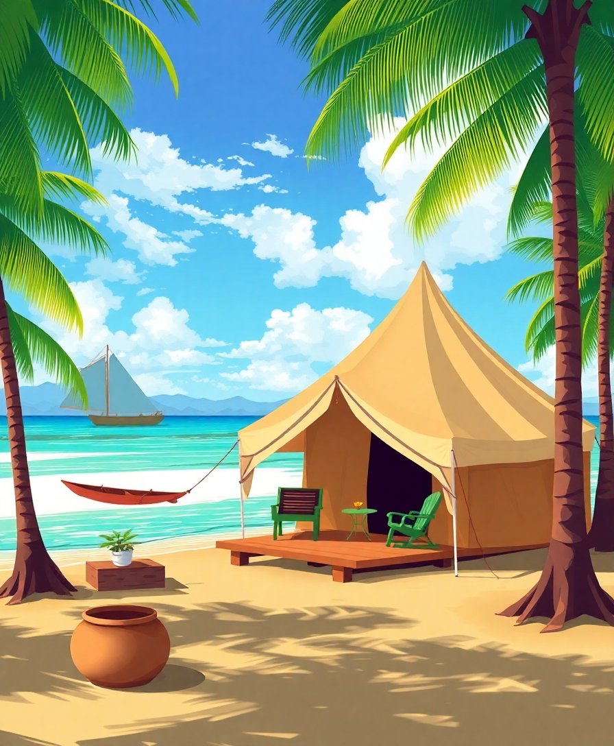 Vintage Island Tent Retreat Paint By Numbers