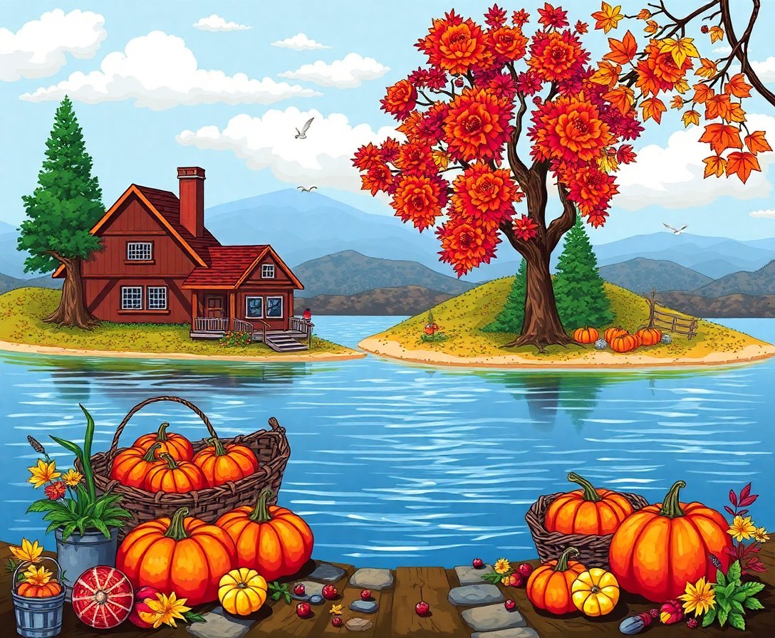 Transform your space with the enchanting Vintage Island Thanksgiving Bounty Paint By Numbers, a stunning still life masterpiece that captures autumn’s golden harvest. This exquisite kit brings vintage charm to your creative journey while celebrating the season’s abundance.