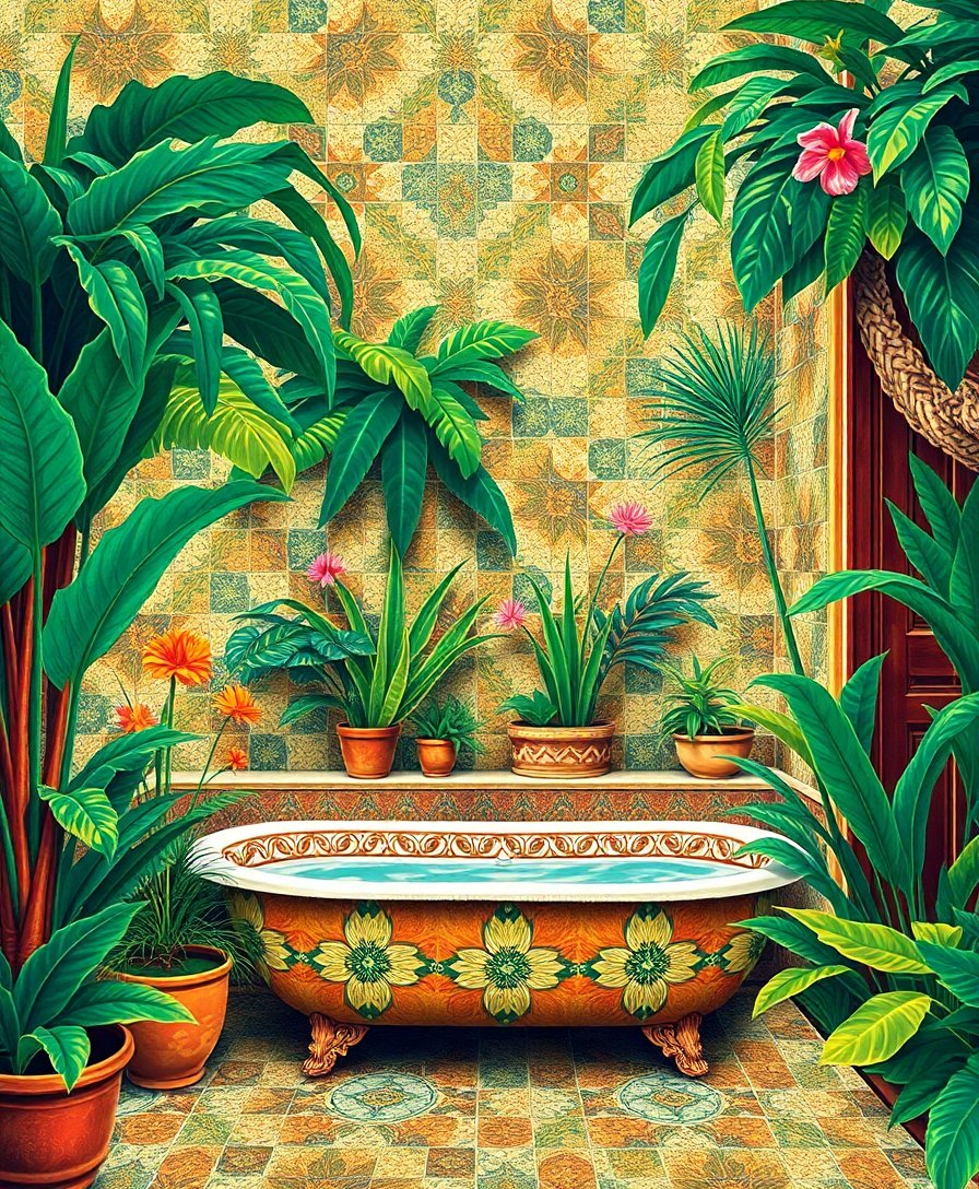 Vintage Jungle Bathhouse Tiles Paint By Numbers