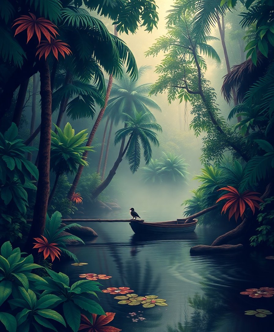 Vintage Jungle Fog Waters Paint By Numbers