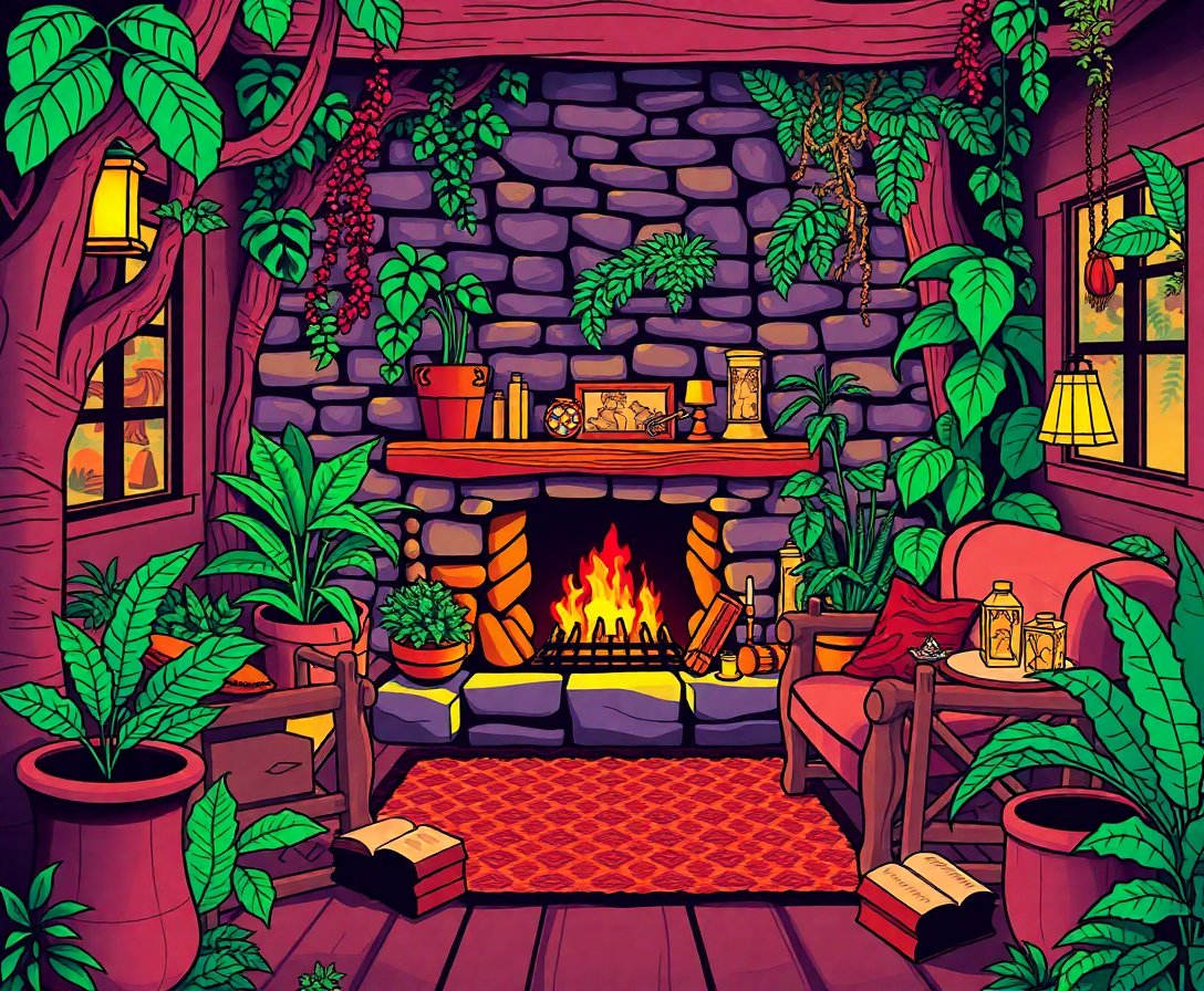 Experience profound relaxation as you immerse yourself in this meditative painting process. Additionally, the combination of jungle elements and hearth warmth creates a uniquely soothing artistic experience. Moreover, each brushstroke connects you to the nostalgic literature-inspired atmosphere. Furthermore, painting promotes mindful relaxation while developing your creative skills.