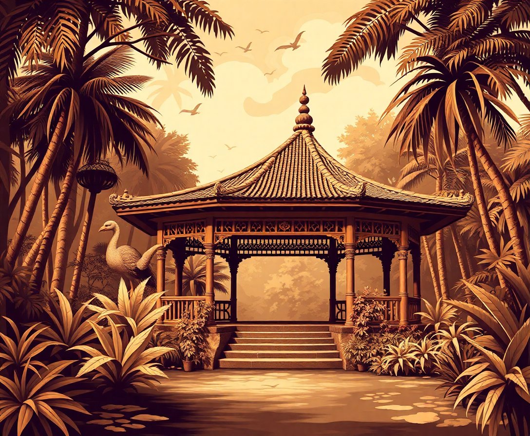 Transform your artistic vision into reality with this stunning Vintage Jungle Pavilion Paint By Numbers. This nostalgic masterpiece captures the timeless elegance of tropical architecture. The sepia tones evoke memories of bygone eras. Each brushstroke brings you closer to creating your own vintage paradise.