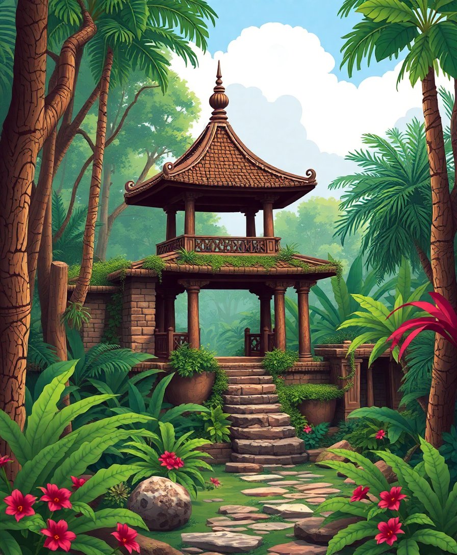 Transform your creative space with the captivating Vintage Jungle Pavilion Ruins Paint By Numbers. This extraordinary kit invites you to recreate an enchanting scene where nature reclaims ancient architecture. Each brushstroke brings weathered stone and lush vegetation to life.