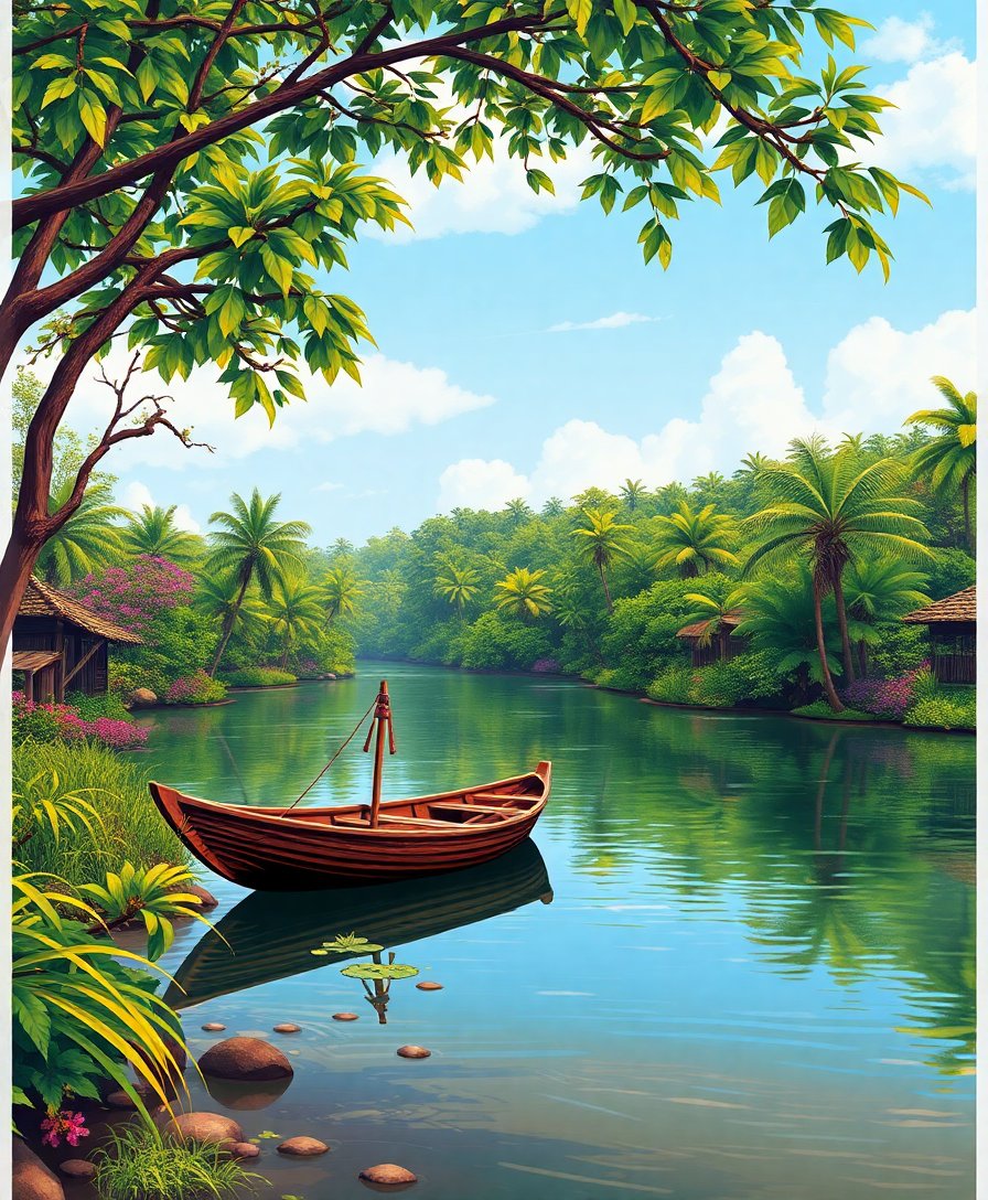Transform your space with this captivating Vintage Jungle River Skiff Paint By Numbers masterpiece. This nostalgic artwork captures the serene beauty of a weathered skiff nestled along a tranquil riverbank. Moreover, the vintage sepia tones create an enchanting atmosphere that transports you to simpler times.