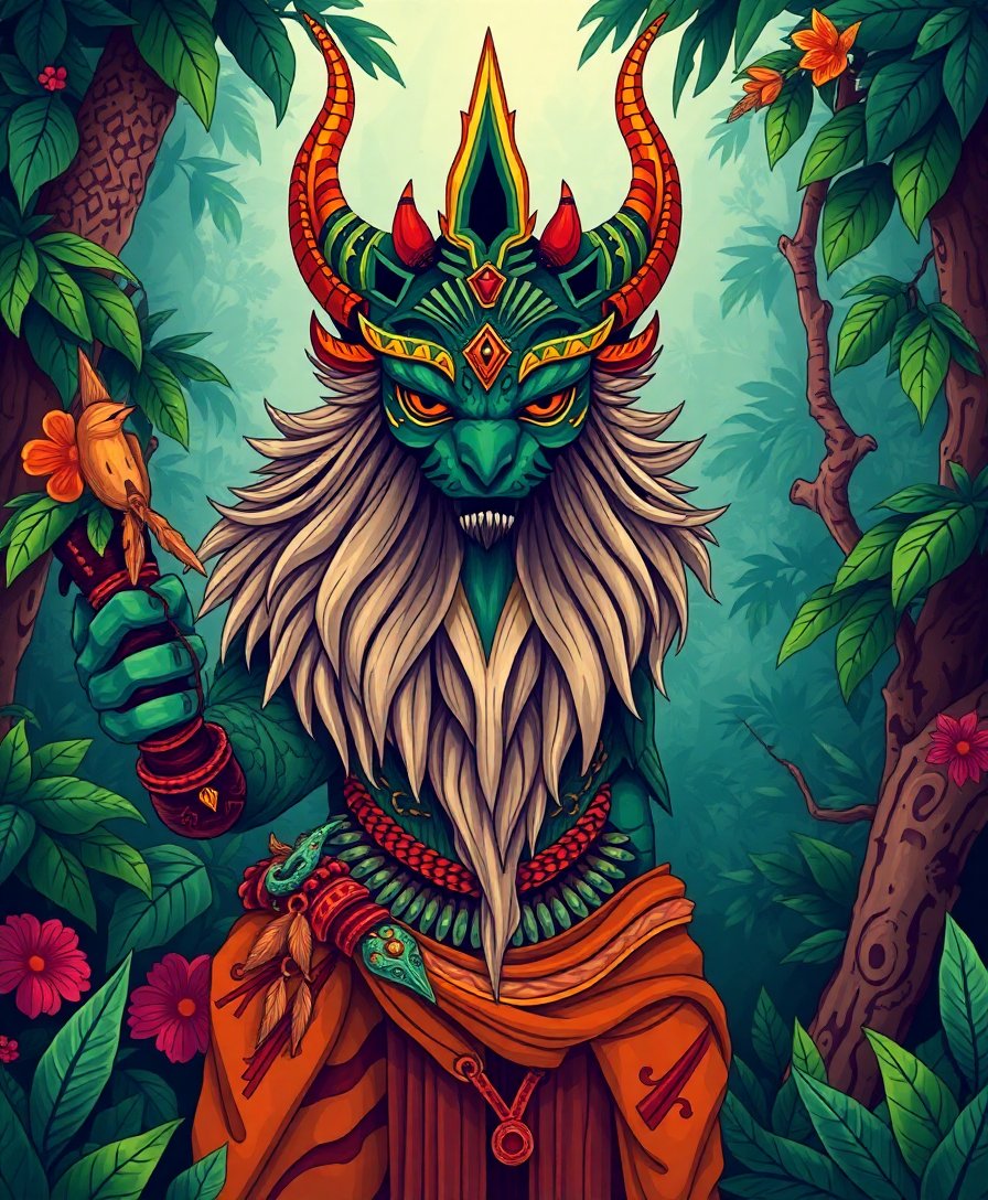Embrace the magic of ancient folklore through this captivating artistic journey. Your Vintage Jungle Spirit Guardian awaits transformation through your creative touch.
