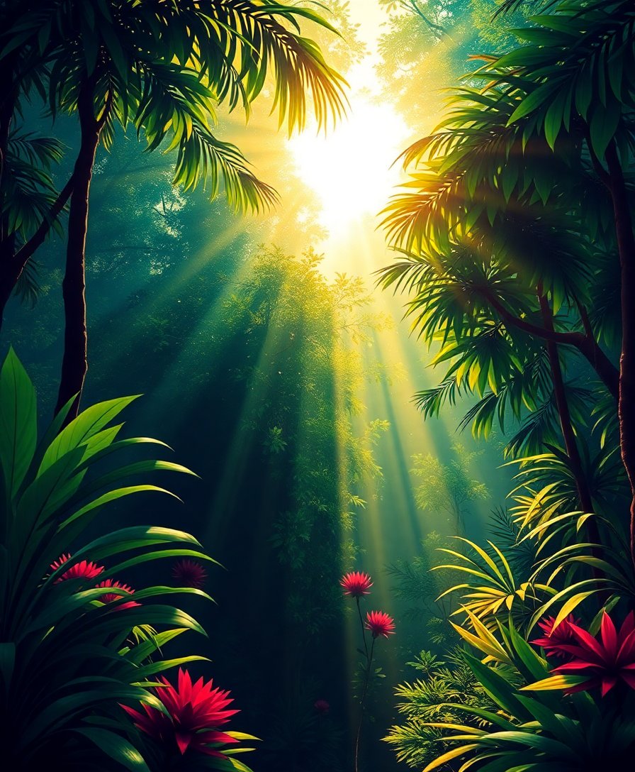 Ultimately, step back and admire your finished masterpiece. The interplay of sunbeams through vintage jungle foliage creates stunning chiaroscuro effects that captivate viewers instantly.