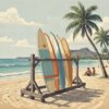 Ultimately, step back and admire your finished creation. The vintage jungle pathway emerges with nostalgic charm. Your artwork captures the essence of retro surf culture perfectly.