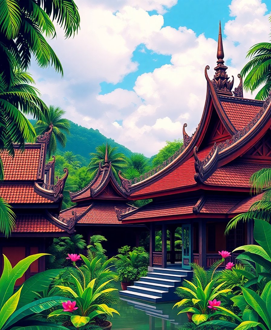 Our vintage jungle temple design stands out for its exceptional detail and cultural richness. The golden temple roofs contrast beautifully against the lush green canopy. Premium materials ensure vibrant, lasting colors. Additionally, the finished piece makes an elegant conversation starter that celebrates Southeast Asian temples and their architectural heritage.