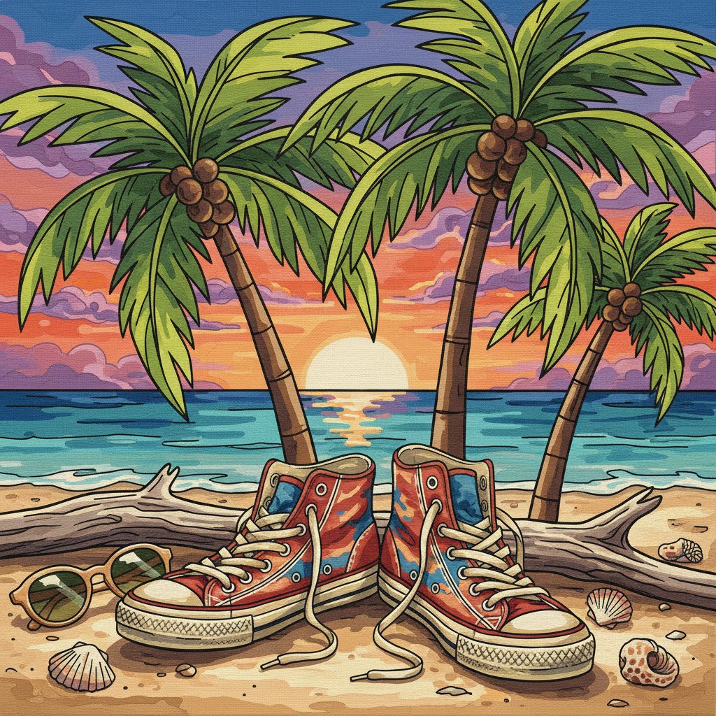 Transform your space with the captivating Vintage Kicks Under Palms Paint By Numbers kit. This nostalgic design combines retro sneaker culture with serene beach vibes. Create a stunning masterpiece that celebrates vintage footwear beneath swaying palms.
