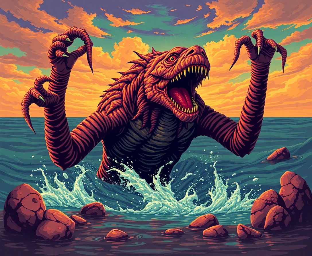 What’s Included in Your Vintage Lagoon Creature Rising Paint By Numbers Kit