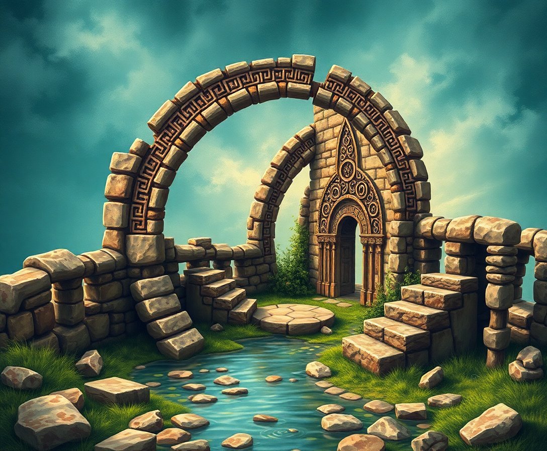 Ultimately, step back and admire your completed masterpiece showcasing submerged Celtic spirals. The vintage aesthetic emerges beautifully as final details bring the ruins to life. Your finished artwork captures both mystery and cultural heritage magnificently.