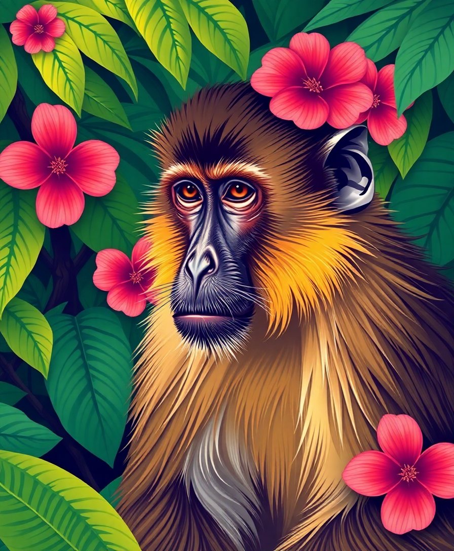 Vintage Macaque Tropical Portrait Paint By Numbers