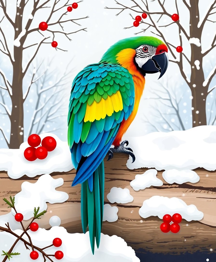 Transform your holiday season with this enchanting Vintage Macaw Winter Log Paint By Numbers masterpiece. This festive painting captures a magnificent macaw perched on a snow-covered yule log, combining vintage charm with seasonal wonder. Perfect for creating memorable holiday artwork, this kit brings Victorian elegance to your creative journey.