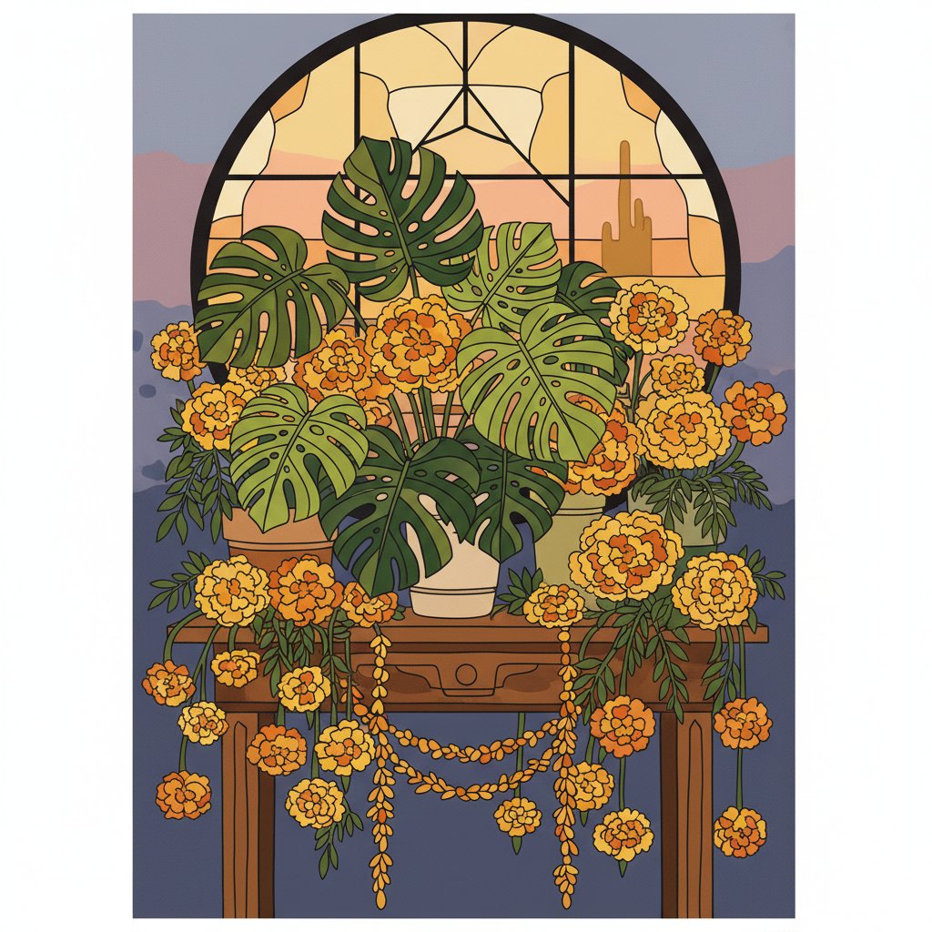Transform your creative space with this stunning Vintage Marigold Monstera Altar Paint By Numbers design. This captivating kit celebrates the vibrant tradition of Dia de los Muertos through botanical artistry. Moreover, each brushstroke honors ancestral memories while creating your personal masterpiece.