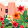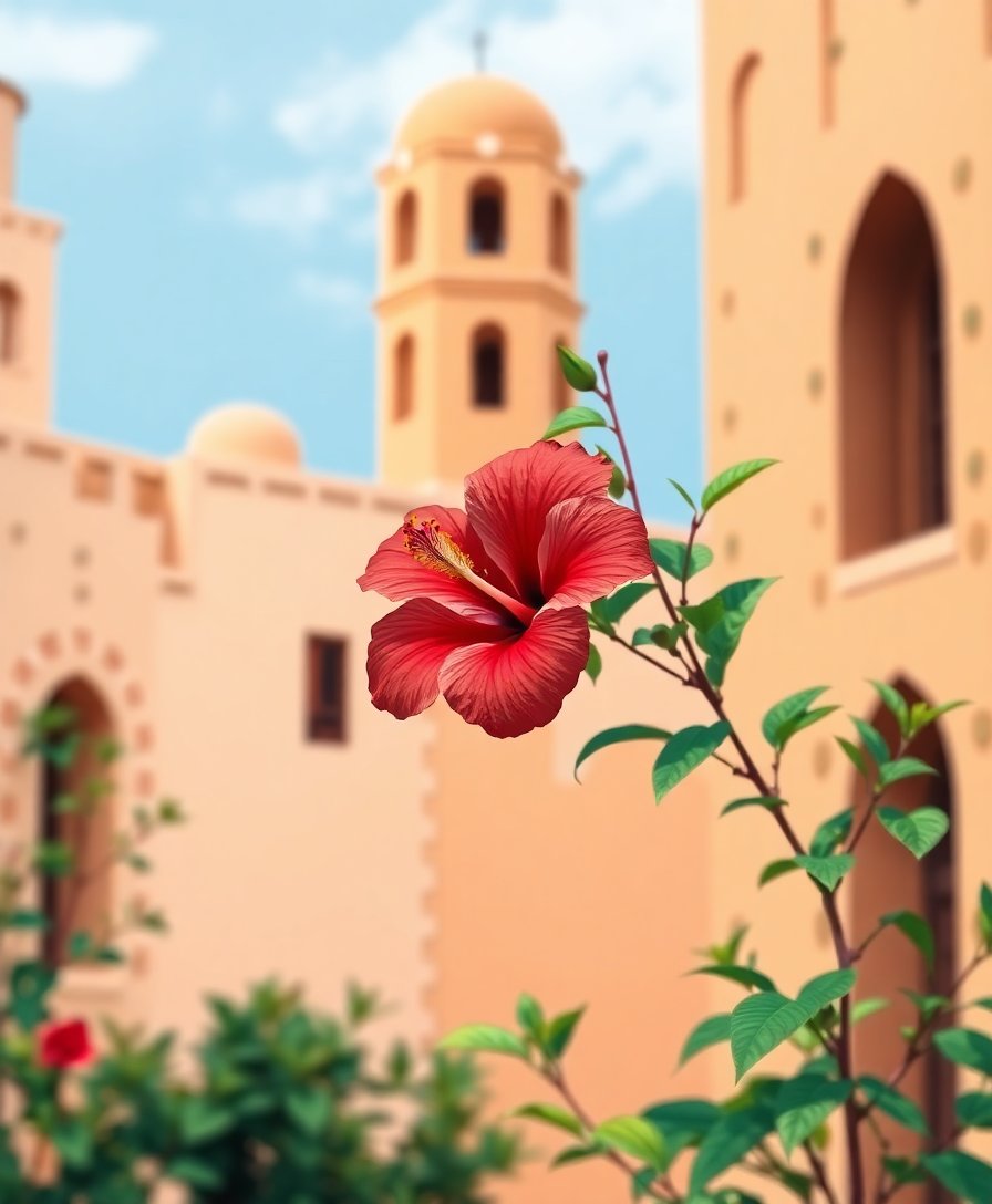 Ultimately, step back and admire your completed North African scene. The rich terracotta walls and vibrant hibiscus blooms create a captivating vintage atmosphere that transforms any room.