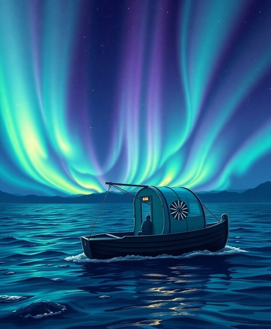 The luminescent pod design creates a mystical underwater atmosphere with sophisticated vintage colors. The nocturnal marine scene offers both artistic challenge and meditative calm.