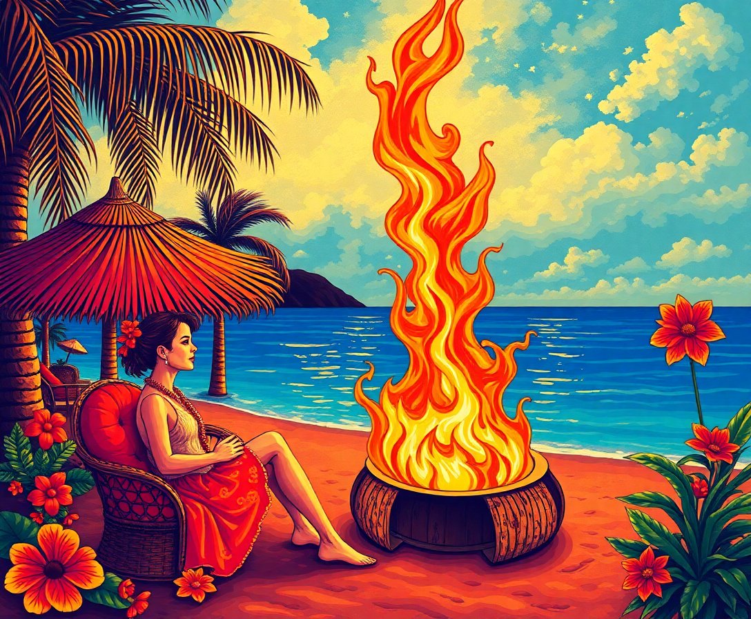 Transform your creative space with this enchanting Vintage Midsummer Luau Fire Paint By Numbers masterpiece. This captivating design captures the magical essence of a tropical bonfire celebration under glowing nightfall skies. Moreover, each brushstroke brings you closer to recreating this mesmerizing tiki-inspired scene.