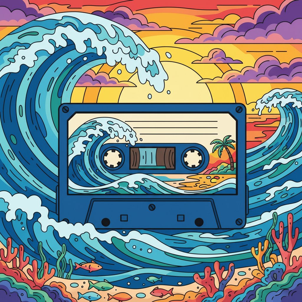 Ultimately, step back and admire your finished creation. The vintage cassette tape emerges beautifully against ocean swells. Moreover, this pop culture artwork brings nostalgic charm to any room.