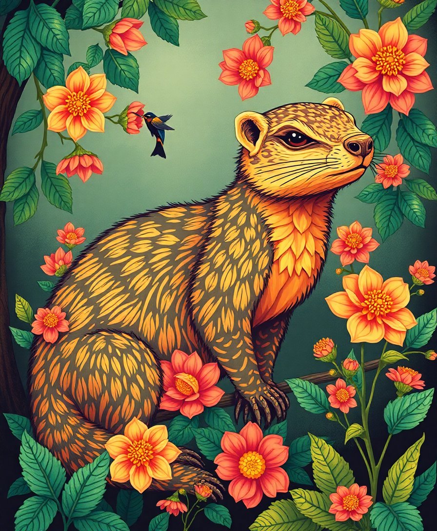 Transform your space with this captivating Vintage Mongoose Ginger Blooms Paint By Numbers design. This enchanting wildlife masterpiece combines botanical elegance with charming mongoose artistry. Create a stunning conversation piece that celebrates nature’s beauty.