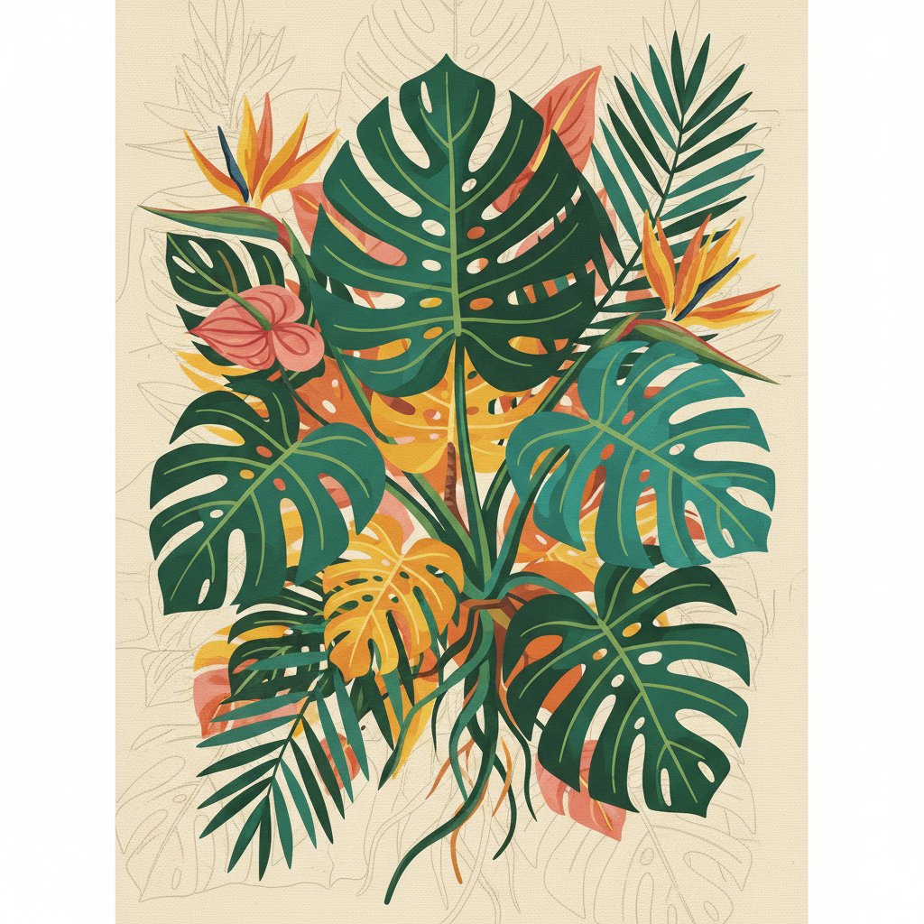 Embrace the meditative joy of creating your own botanical masterpiece. This vintage monstera design brings sophisticated natural beauty into your daily routine through relaxing artistic practice.