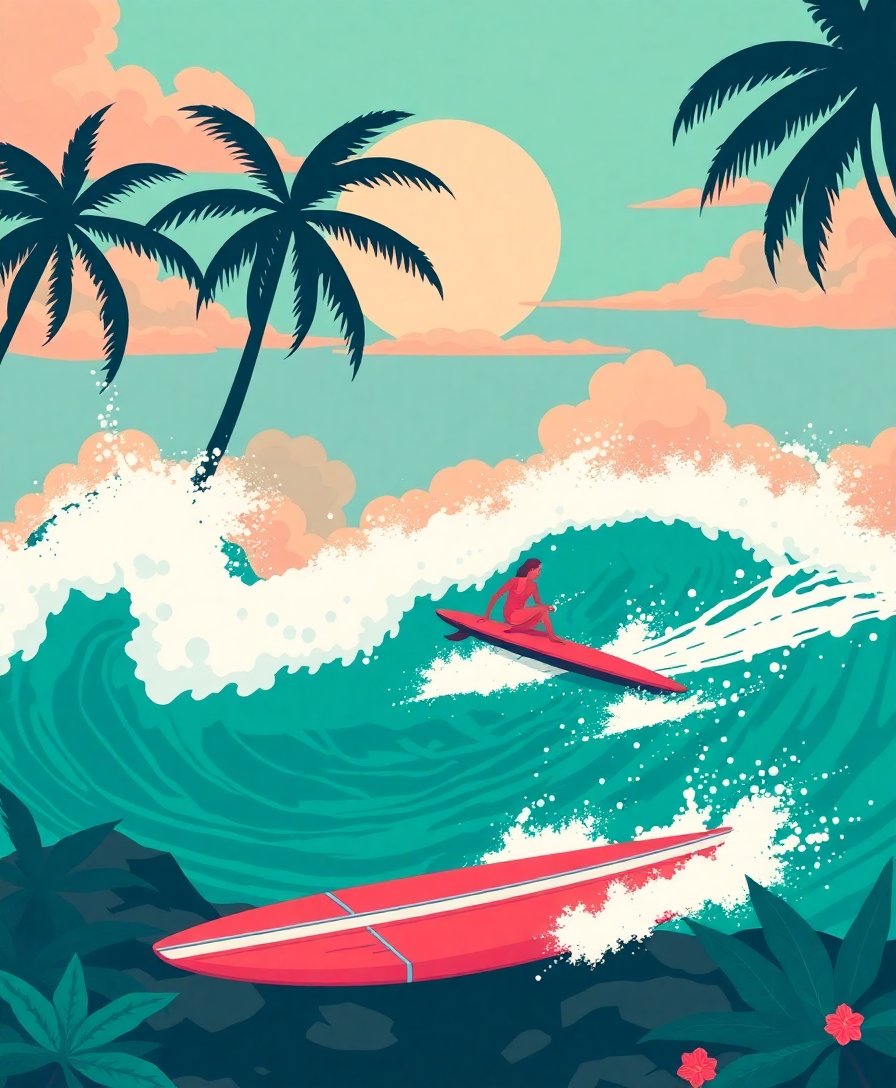 Transform your space with the captivating beauty of coastal nostalgia through our Vintage Monstera Dawn Surf Paint By Numbers. This stunning design captures the essence of retro surf culture with vibrant sunrise hues dancing across tropical monstera leaves and vintage surfboard silhouettes.