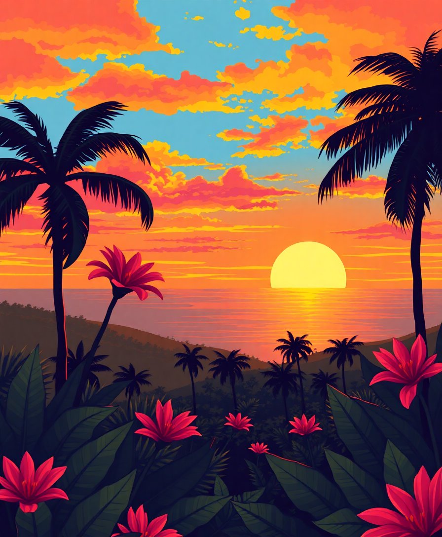 Embrace the nostalgic beauty of tropical sunsets through this engaging creative process. Moreover, each brushstroke brings you closer to completing your personal vintage masterpiece.