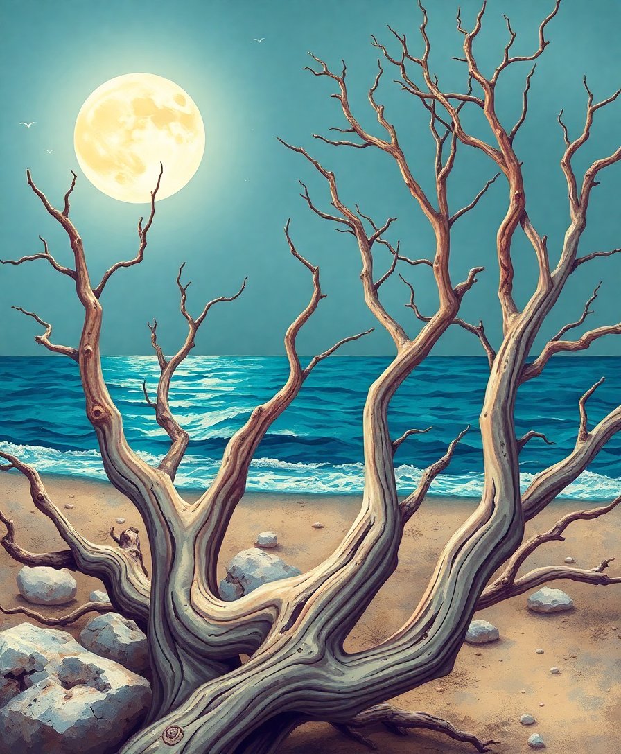 Transform your space with the captivating beauty of moonlit shores through this Vintage Moonlit Coastal Branches Paint By Numbers kit. This stunning design captures silver moonbeams dancing across weathered driftwood branches. Each brushstroke brings you closer to creating your own coastal masterpiece.
