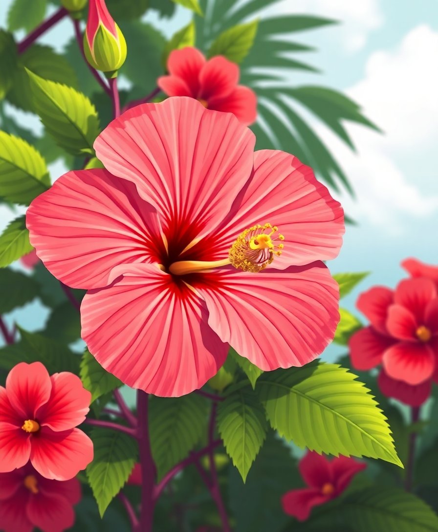 Ultimately, step back and admire your completed hibiscus masterpiece. Furthermore, the vintage morning atmosphere creates stunning visual appeal. Finally, your realistic botanical creation becomes a treasured focal point.