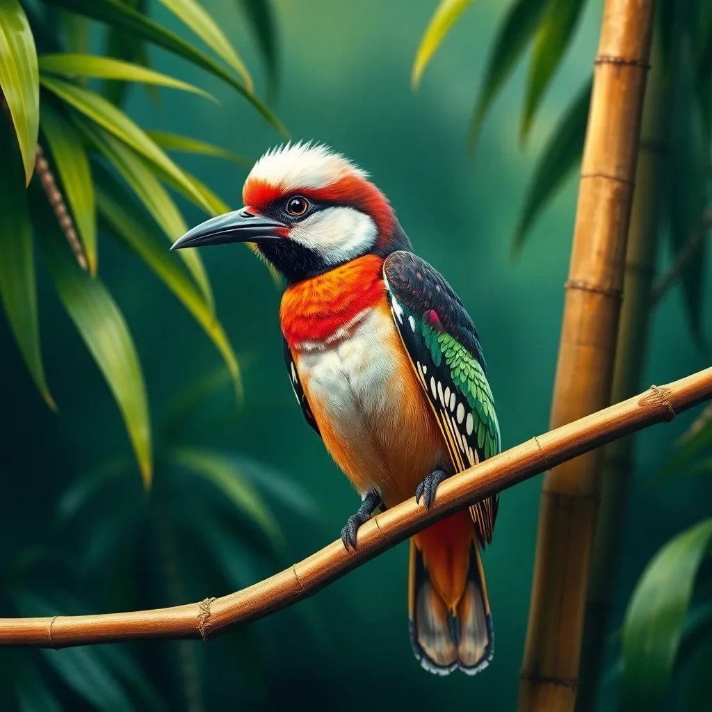 Ultimately, step back and admire your completed vintage motmot artwork. The bamboo textures and bird details will showcase your artistic achievement beautifully on any wall.