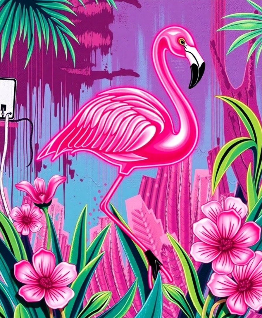 Transform your space with this striking Vintage Neon Flamingo Mural Paint By Numbers kit. This vibrant design combines retro charm with modern street art aesthetics. Additionally, the bold neon colors create an eye-catching focal point for any room.