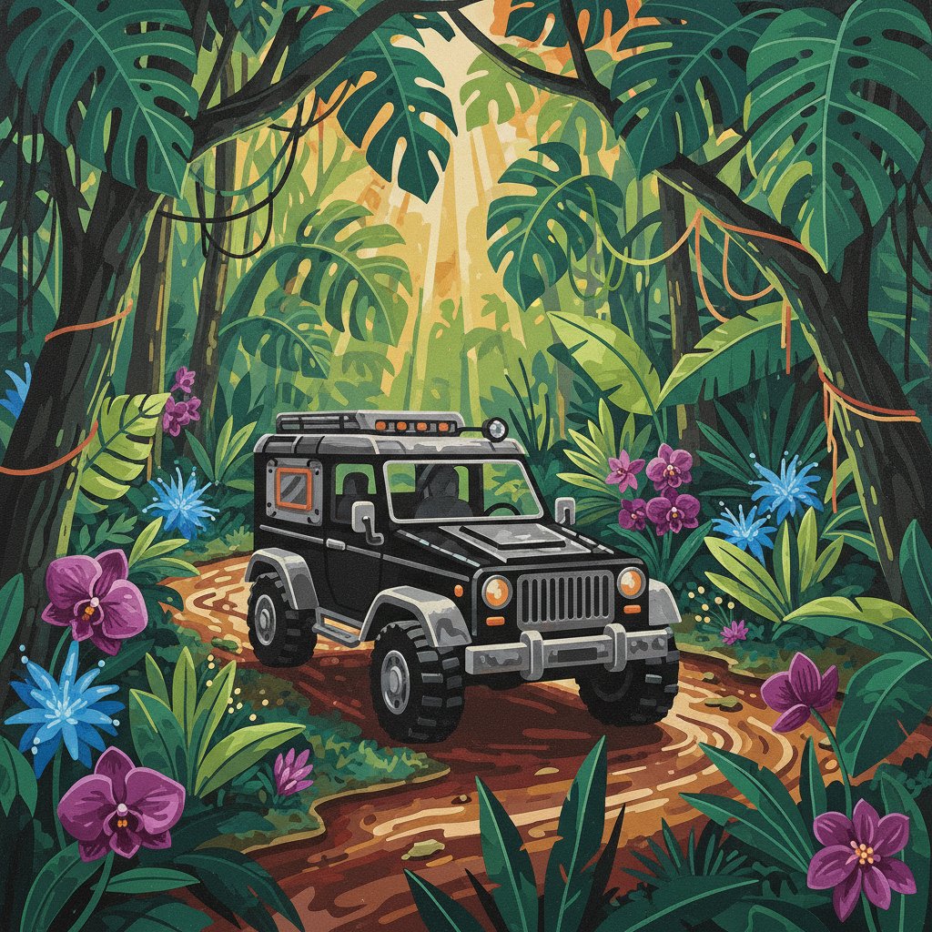 Transform your creative space with the captivating Vintage Obsidian Jungle Rover Paint By Numbers. This extraordinary kit combines retro-futuristic elements with mystical jungle themes. Create a stunning masterpiece that transports viewers to an otherworldly realm where vintage exploration meets cosmic adventure.