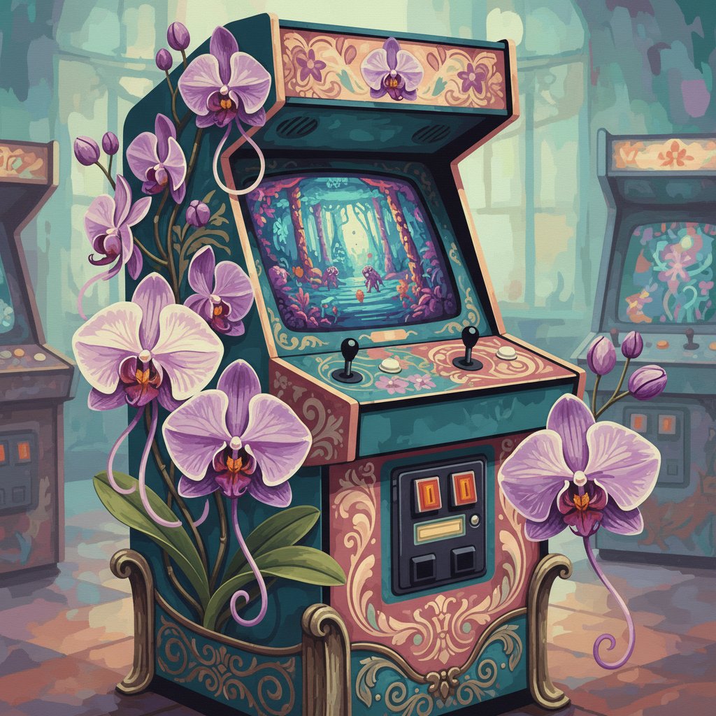 This exceptional design merges vintage arcade aesthetics with elegant orchid motifs seamlessly. Additionally, high-quality materials ensure lasting color vibrancy and durability. Moreover, the unique theme appeals to gaming enthusiasts and botanical art lovers alike. Furthermore, detailed numbering system makes complex designs achievable for all skill levels.