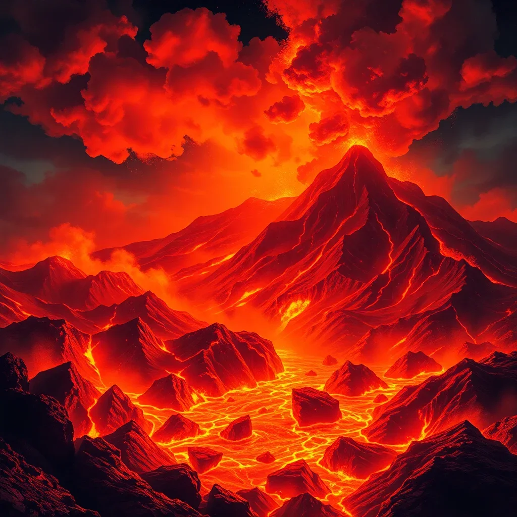 Ultimately, step back and admire your finished creation. The warm magma tones create a stunning focal point. Your completed artwork showcases the dramatic beauty of Volcanic Island Eruptions in vintage style.