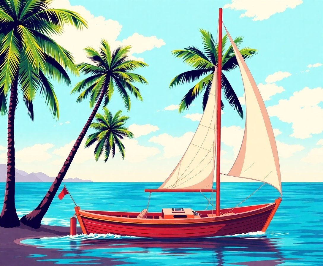 Transform your space with the nostalgic charm of this Vintage Palm Cove Sailboat Paint By Numbers kit. This coastal masterpiece captures the serene beauty of turquoise waters and swaying palms. Additionally, you’ll discover the meditative joy of creating vintage-inspired artwork that celebrates timeless coastal beauty.