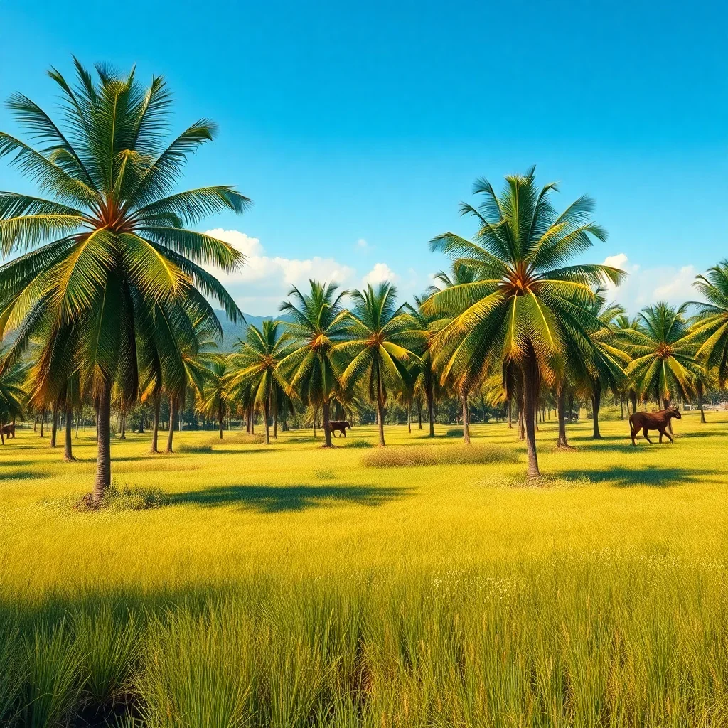 Ultimately, step back and admire your completed vintage masterpiece. The golden hues and tropical atmosphere create a stunning focal point. Your finished painting captures the essence of peaceful pastureland beneath swaying palms.