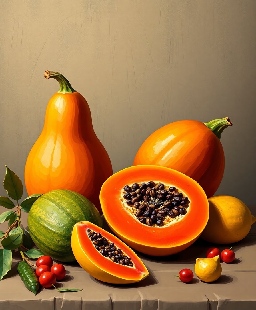 Ultimately, step back and admire your completed baroque masterpiece. Furthermore, the dramatic papaya still life now showcases your artistic achievement. Additionally, your finished artwork radiates sophisticated vintage charm perfect for display.
