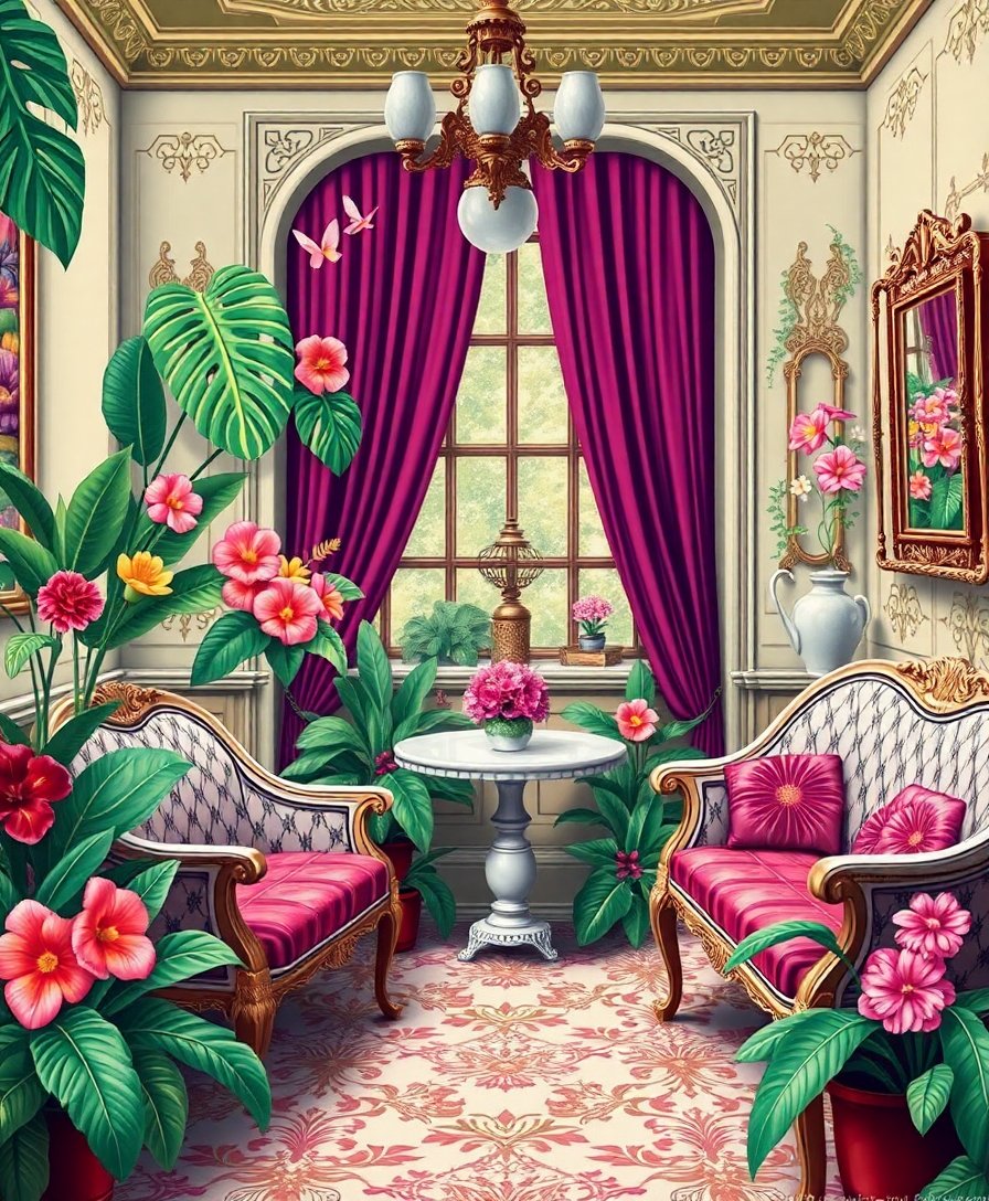 Embrace the joy of creating your own nostalgic artwork today. Therefore, let this vintage tropical blooms design transport you to a peaceful Victorian parlor. Finally, experience the satisfaction of completing a beautiful creative masterpiece that celebrates both artistry and relaxation.