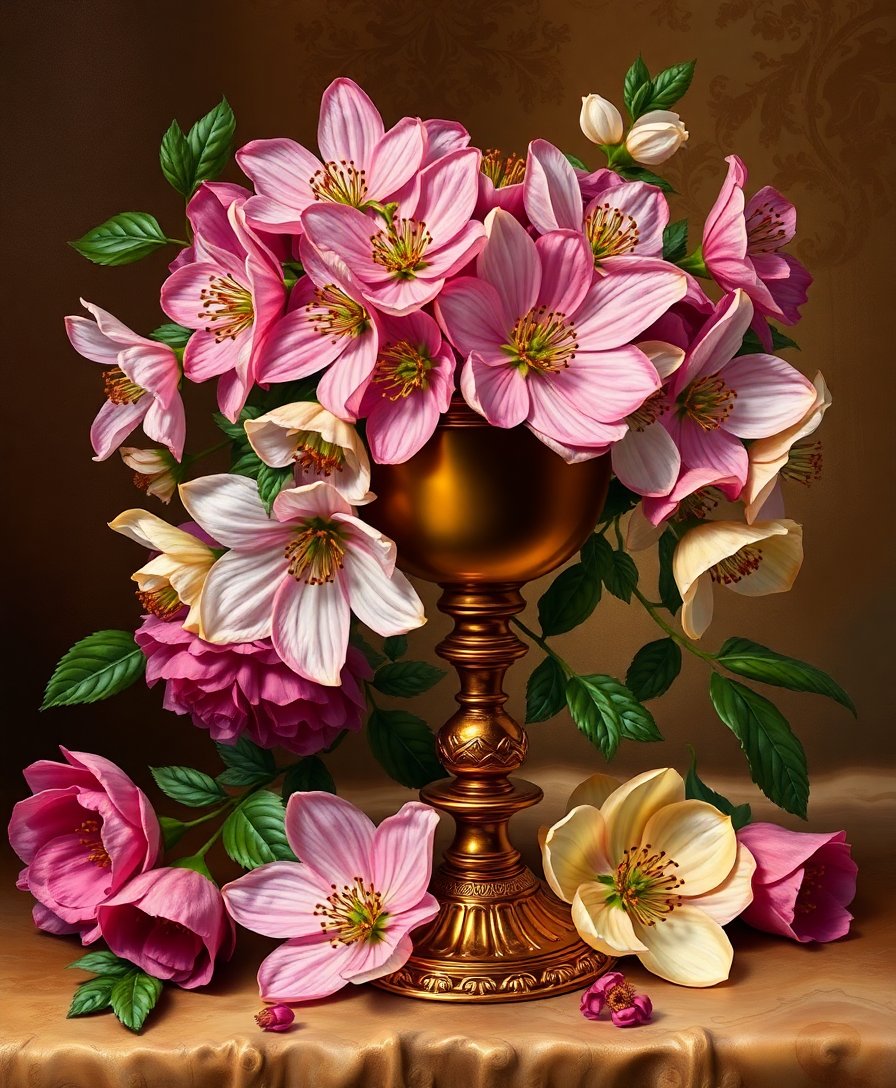 Transform your creative space with this stunning Vintage Passionflower Brass Chalice Paint By Numbers kit. This sophisticated artwork captures the timeless beauty of baroque still life art. Moreover, the rich metallic tones and moody botanical elements create an captivating visual masterpiece.