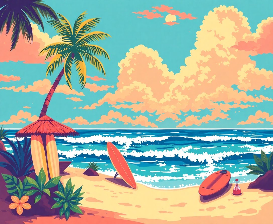 What’s Included in Your Vintage Pixel Surf Paradise Paint By Numbers Kit