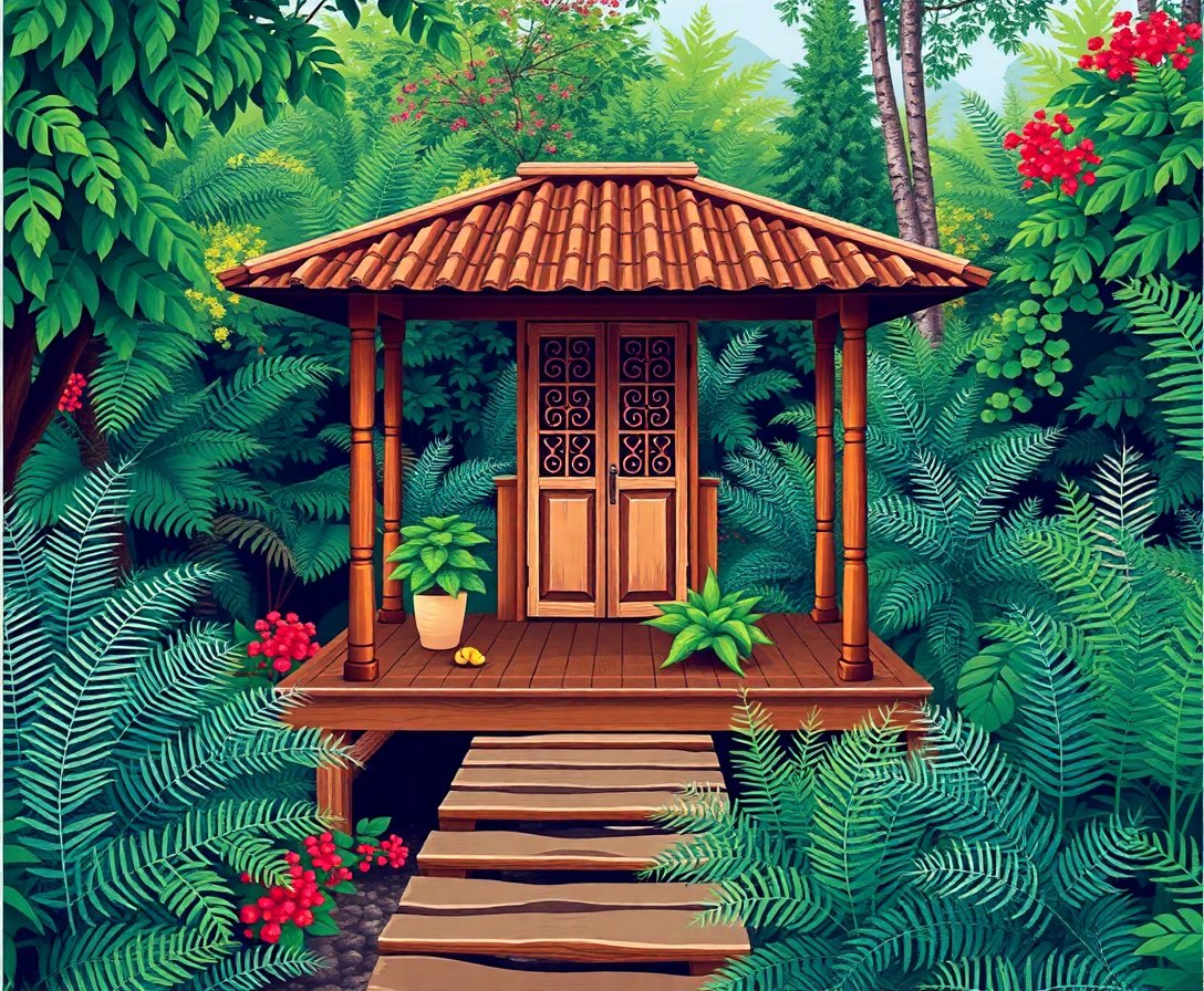 The canvas measures standard paint by numbers dimensions, providing ample space to capture intricate architectural details and organic fern textures with precision and clarity.