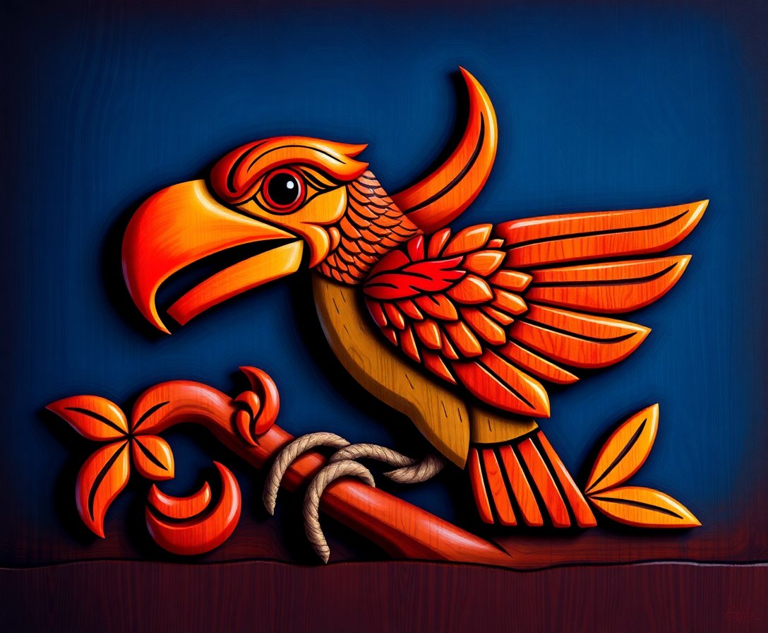 The authentic Polynesian bird carving motif features traditional tribal patterns in elegant sepia tones. This design celebrates ancient craftsmanship while providing a modern creative experience.