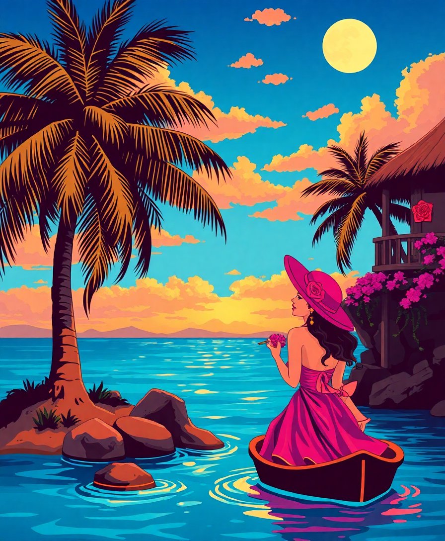 Ultimately, step back and admire your completed romantic island scene. Additionally, the finished piece captures the essence of classic Pulp Fiction Covers artwork. Finally, display your creation proudly in any room that needs vintage charm.